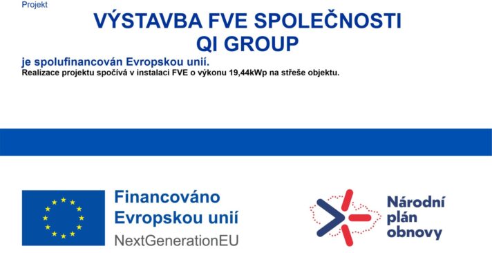 Společnost QI GROUP a. s. zrealizovala projekt instalace fotovoltaické elektrárny o celkovém výkonu 19,44 KWp na střeše vlastní provozní budovy na adrese Kostelecká 21, Prostějov. Cílem bylo snížit spotřebu elektrické energie ze sítě, snížit celkové náklady na energie a taktéž zvýšit úroveň nezávislosti na odběru energie z distribuční sítě. Instalací FVE dále dochází ke snížení emisí CO2.